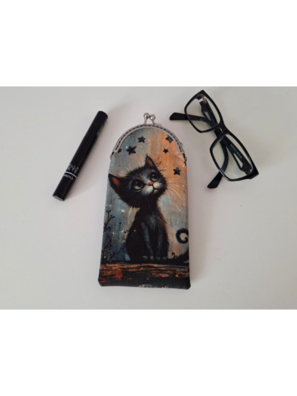 | taštička na brýle: | čarodějka s kočkou |