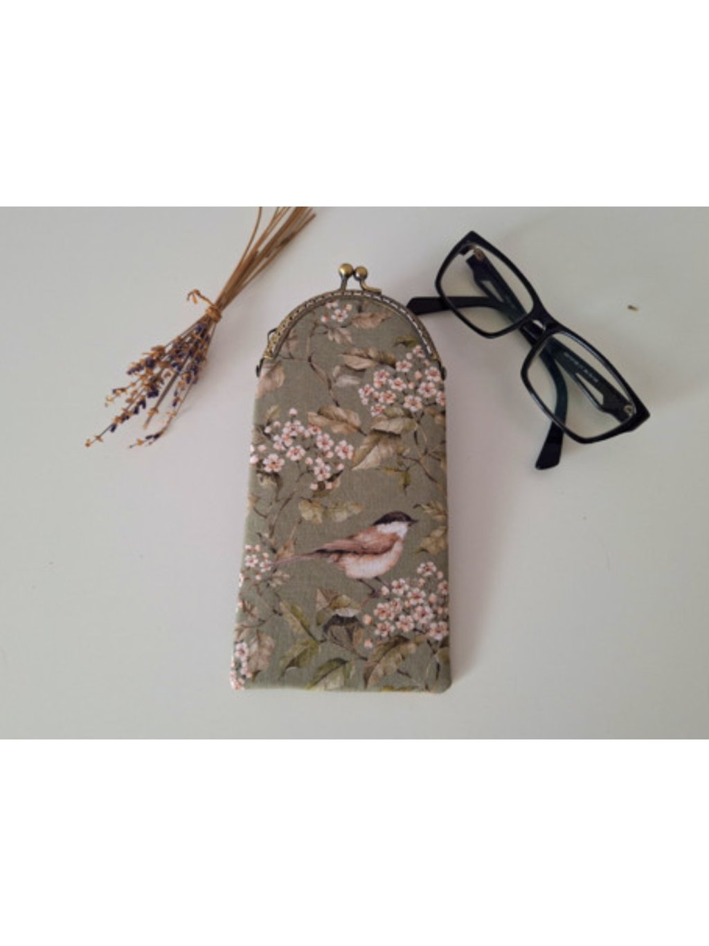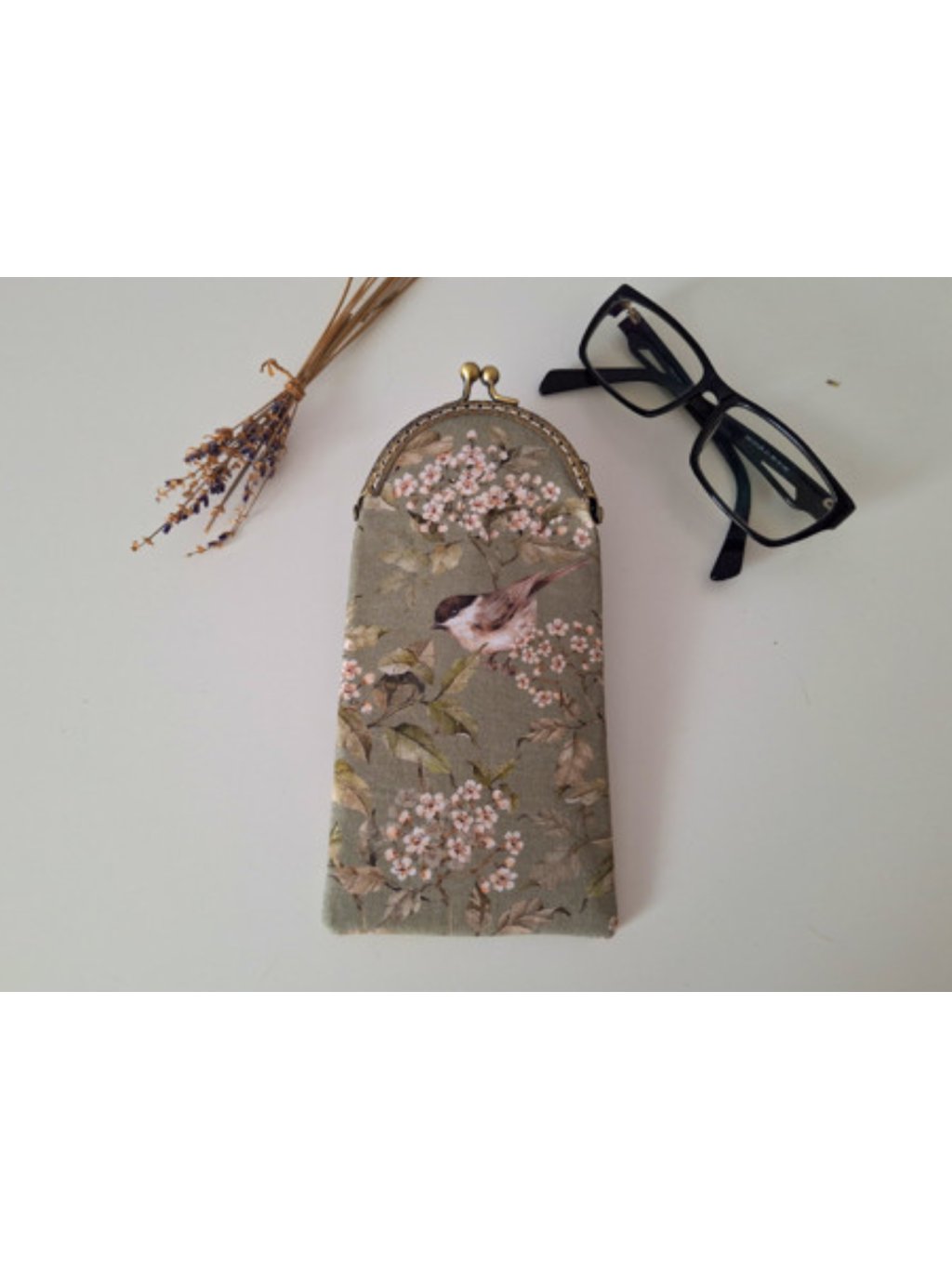 Pouzdro šité z oblíbené něžné a zelenkavě jarní látky s rozkvetlými větvičkami a ptáčky. Do sady tu pod stejným názvem najdete více šitých věciček