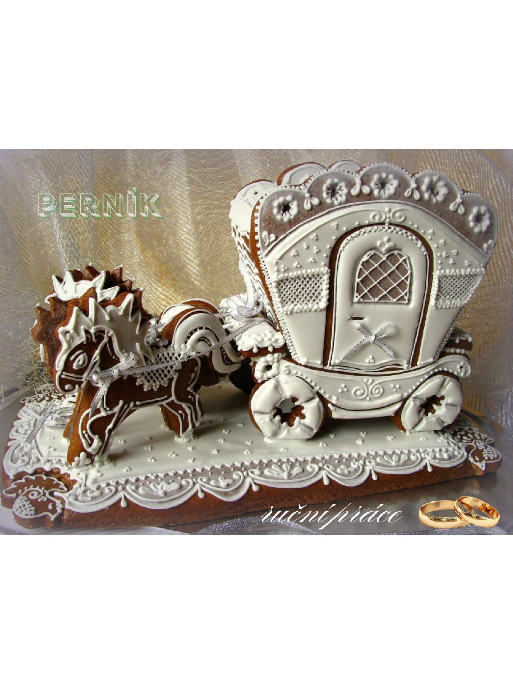 Svatební perníkový kočár v 3D provedení Speciální výrobek - náročné provedení