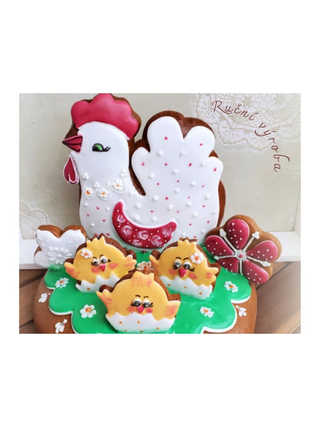 Šířka perníkové podstavy: 21, výška slepičky 18 cm