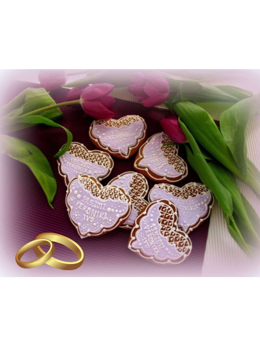 Srdce z perníku - dárek pro hosty nebo jmenovka v barvě lila